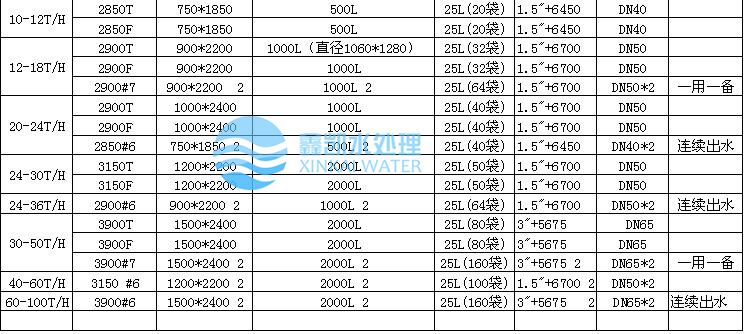 鈉離子樹脂軟化罐控制方式為全自動型控制,全自動型控制是根據周期制水量來啟動在再生程序,設備運行時由專用流量計統計總產水量。當總產量達到設定的周期制水量時,控制器啟動再生程序進行自動再生,設備的再生與運行時間無關。全自動軟水器選用優質樹脂交換罐體及鹽箱。
