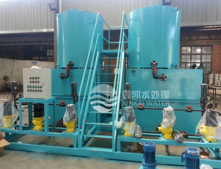 1、油田加藥裝置。主要用于在石油開采中向平臺上的井口和及其他系統(tǒng)注入絮凝劑、阻垢劑、緩蝕劑、破乳劑等各種藥液。